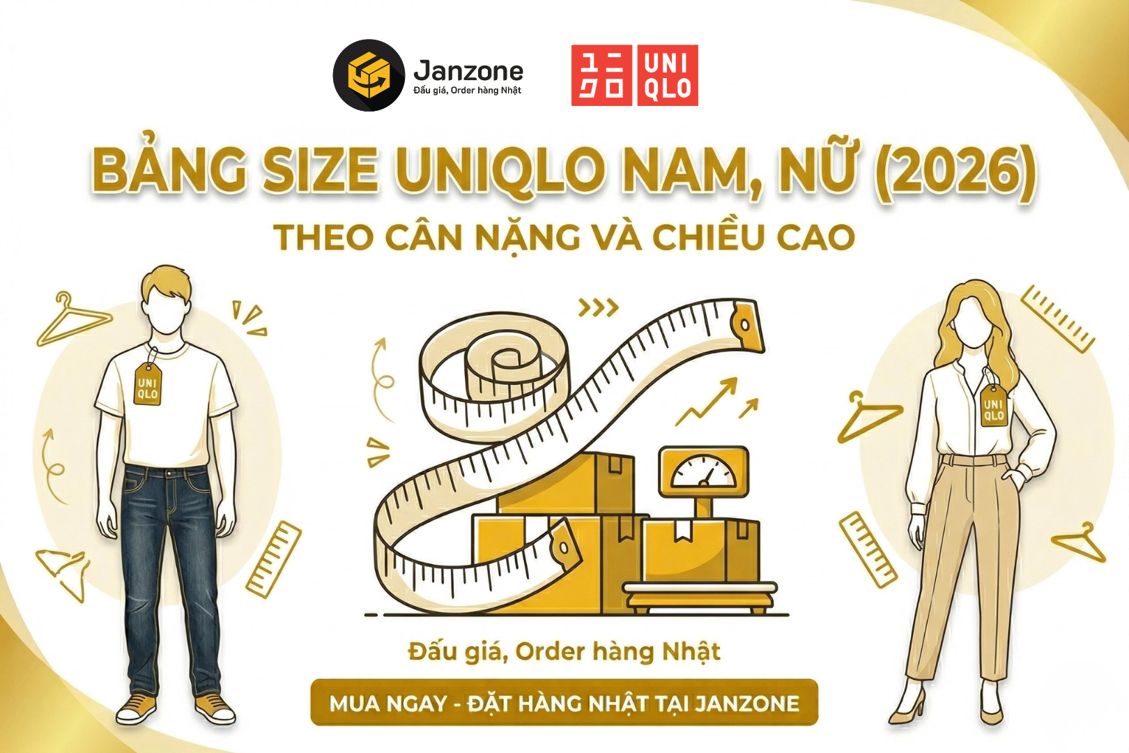 Bảng size Uniqlo nam, nữ (2026) theo cân nặng và chiều cao
