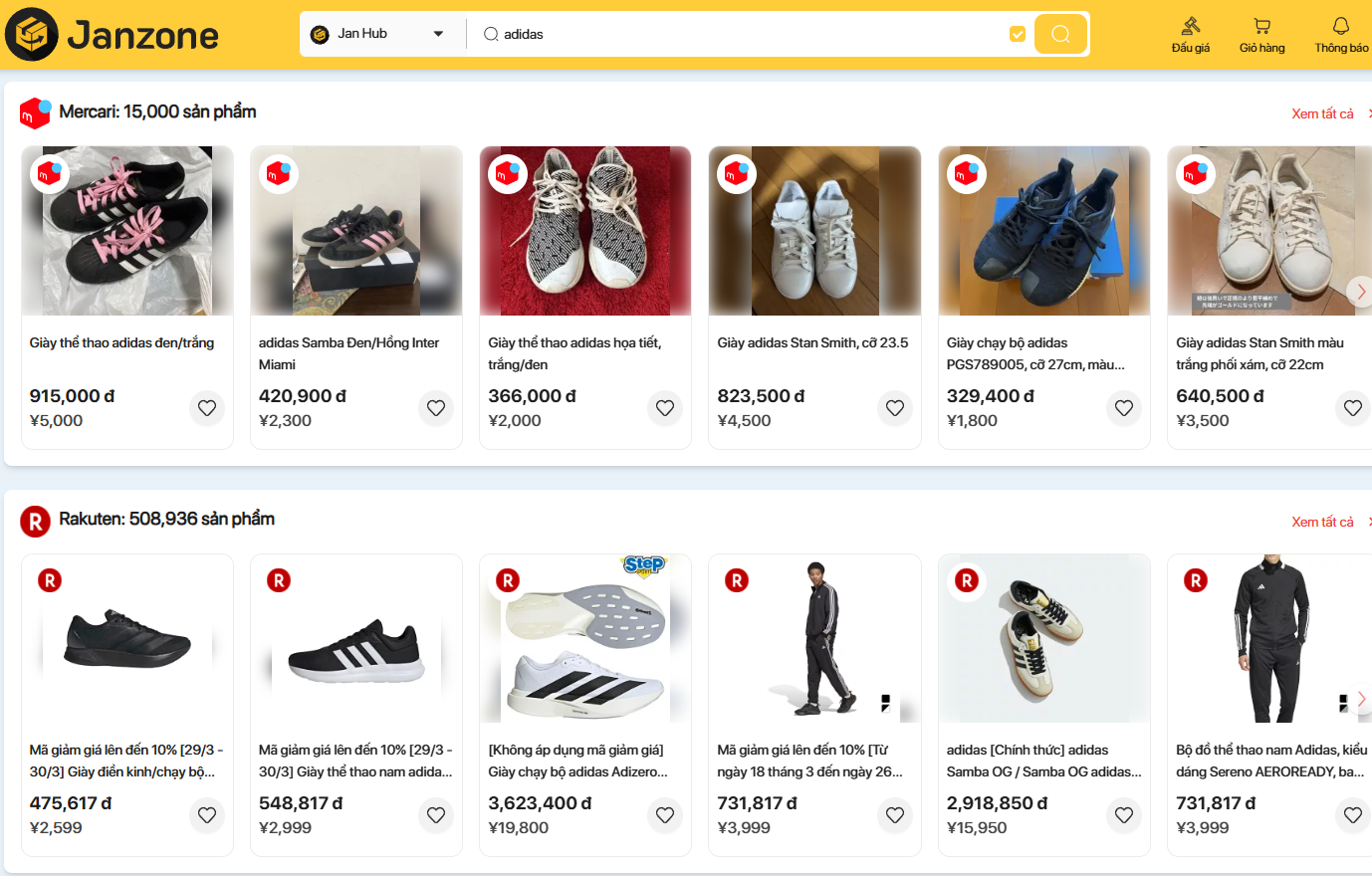 Ngoài việc có thể mua order qua dịch vụ xách tay, nhờ người thân tại Nhật mua hộ, thì giờ đây, chỉ cần thích là bạn có thể tự mình order giày Adidas Nhật một cách đơn giản khi có sự hỗ trợ từ công cụ mua hàng Janzone.com. Đây là website hoàn toàn bằng tiếng Việt, giúp khách hàng có thể mua hàng trực tiếp từ Nhật về Việt Nam, bao gồm giày dép chính hãng và hàng ngàn mặt hàng khác với mức chi phí SIÊU TIẾT KIỆM.